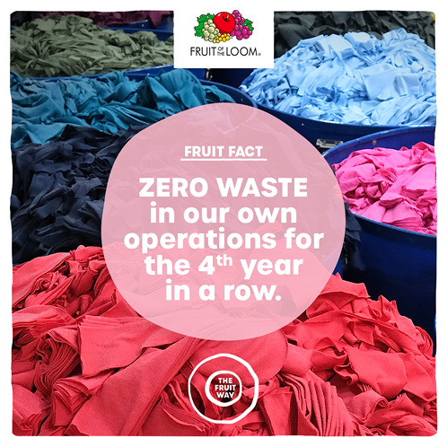 For four years, Fruit of the Loom has successfully exceeded the Zero Waste International Alliance business recognition programme target of diverting 90% of all discarded resources from landfill.